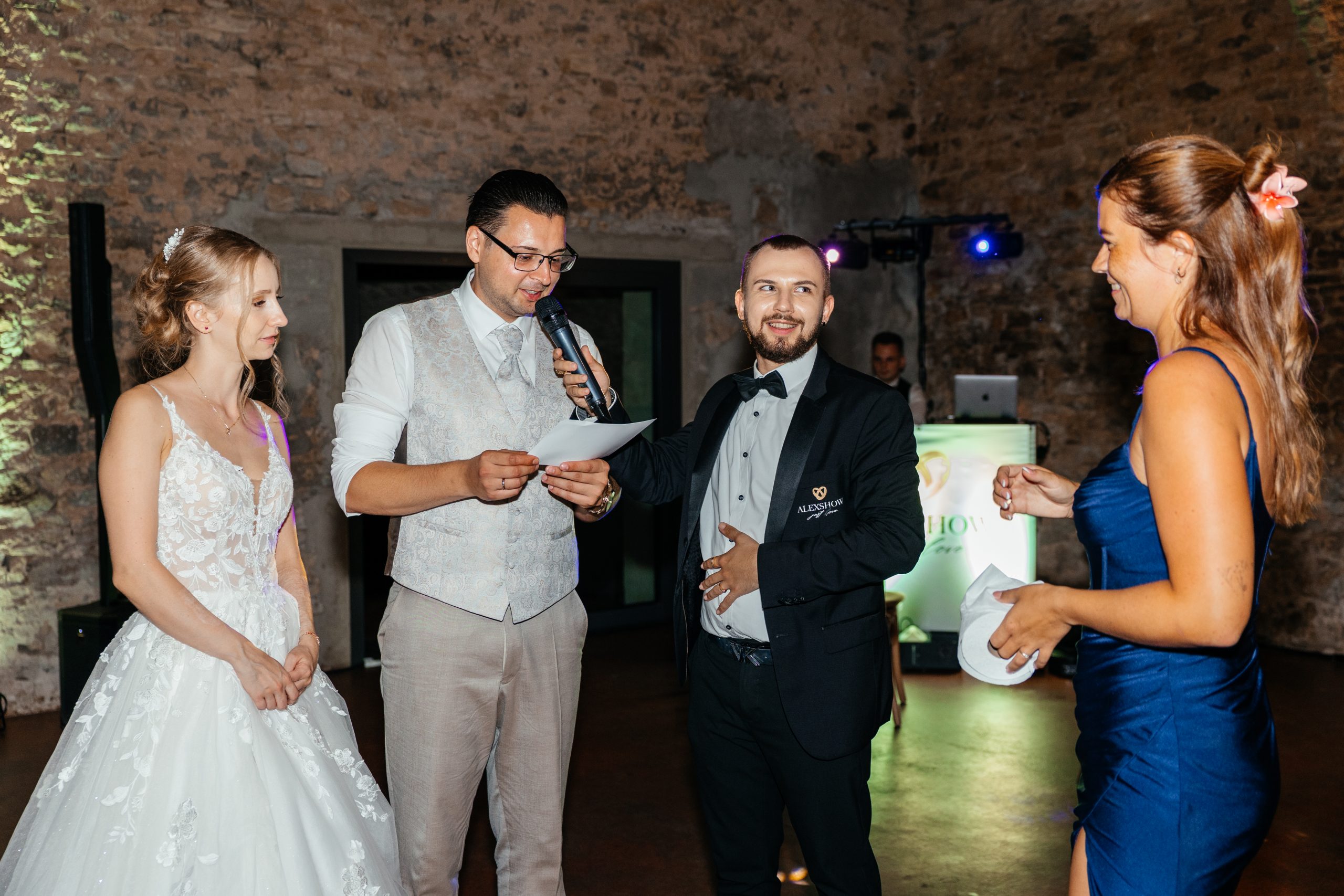 Hochzeitsmoderator Atem spricht ausgezeichnet Deutsch sowie Russisch. Er wechselt mühelos zwischen den Sprachen und kann jede Phrase sofort in eine dieser zwei Sprachen übersetzen. Wenn Sie also einen Dolmetscher für Ihre internationale Hochzeit suchen, haben Sie ihn bereits gefunden.