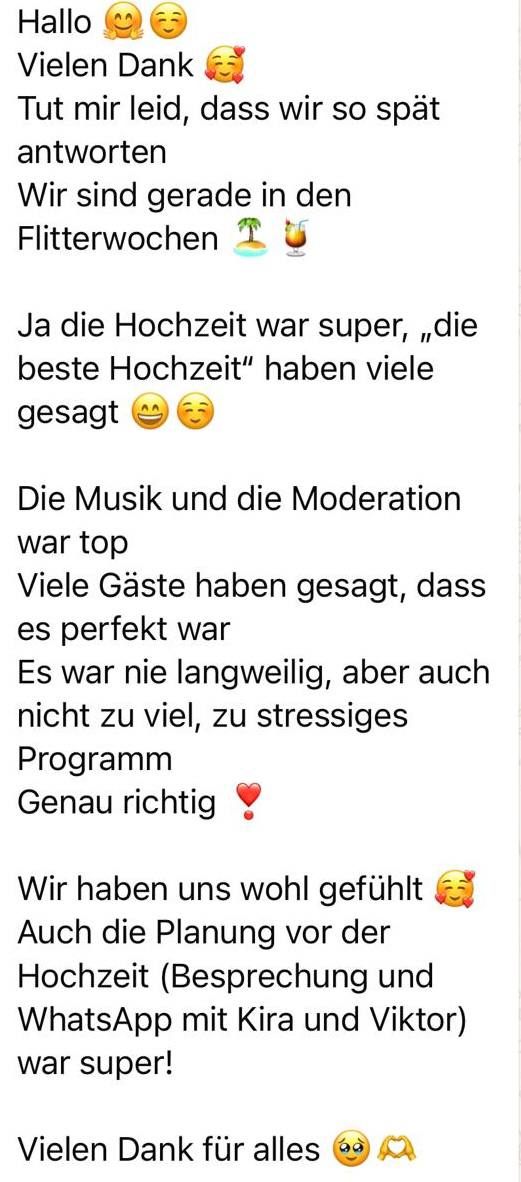 Alexshow hat nur 5⭐️ Bewertungen. Mit über 5000 begleiteten Hochzeiten wissen wir, wie wir Ihren Tag unvergesslich machen. Unsere zertifizierten Künstler sind für 2025 bereits zu 50% gebucht.