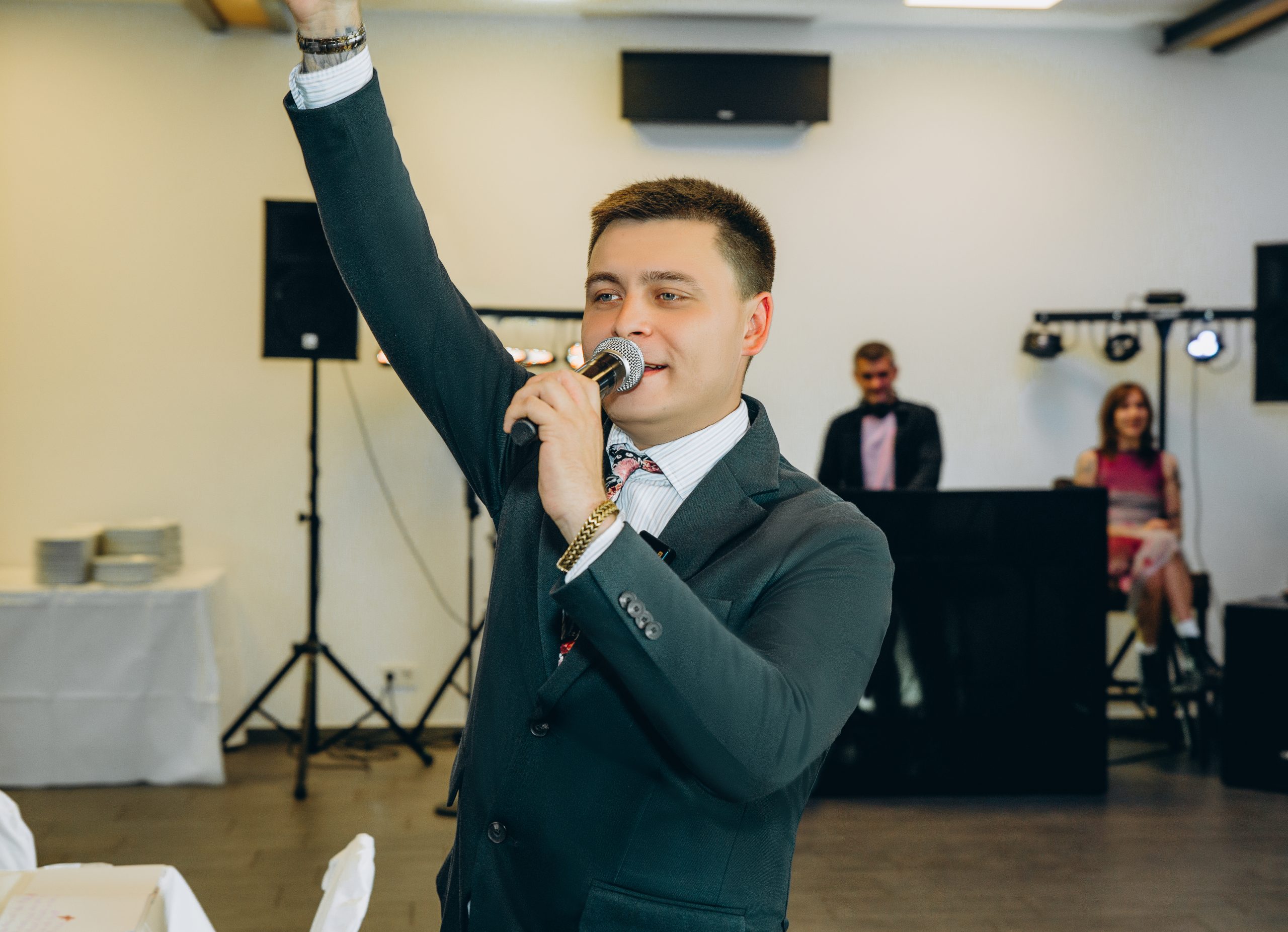 Mit Roman bekommst du nicht nur einen Tamada, sondern einen echten Showman – leidenschaftlichen Sänger, freien Redner, geschickter Hochzeitsplaner und Entertainer in einem. Er spricht fließend Deutsch & Russisch, verbindet Kulturen und Menschen, und bringt mit seiner Stimme, seinem Charme und seiner Erfahrung jede Hochzeit zum Leuchten. Ob mit eigener Live-Band oder zusammen mit einem DJ: Roman sorgt für Emotion, Musik und Stimmung pur. Du bekommst nicht nur Tamada für deine deutsch-russische Hochzeit – du bekommst echtes Gefühl, musikalisches Talent und eine unvergessliche Atmosphäre.